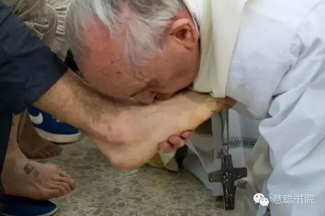 方济各教皇亲吻少年犯的脚,以期望他们走回正途