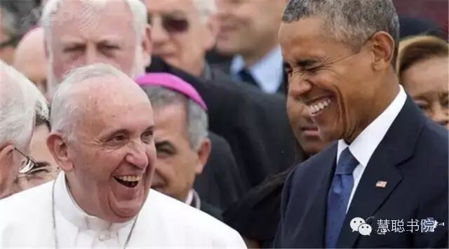 在方济各教皇面前,奥巴马总统彷如纯真的小孩一般